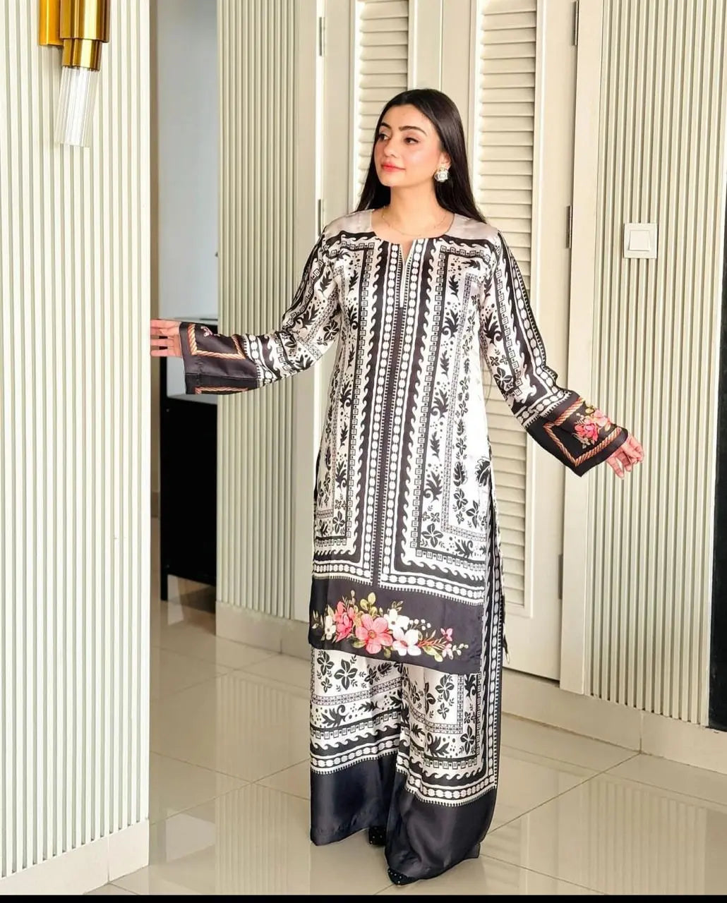 Make a statement with the Black Floral Two-Piece Set, featuring a stunning floral print on luxurious short silk fabric. This stylish and lightweight set is perfect for any occasion, offering both comfort and elegance.