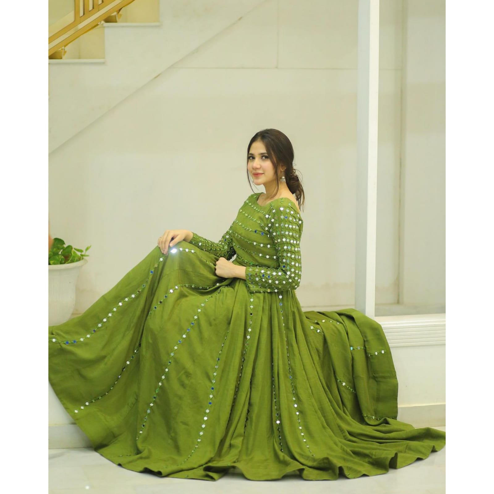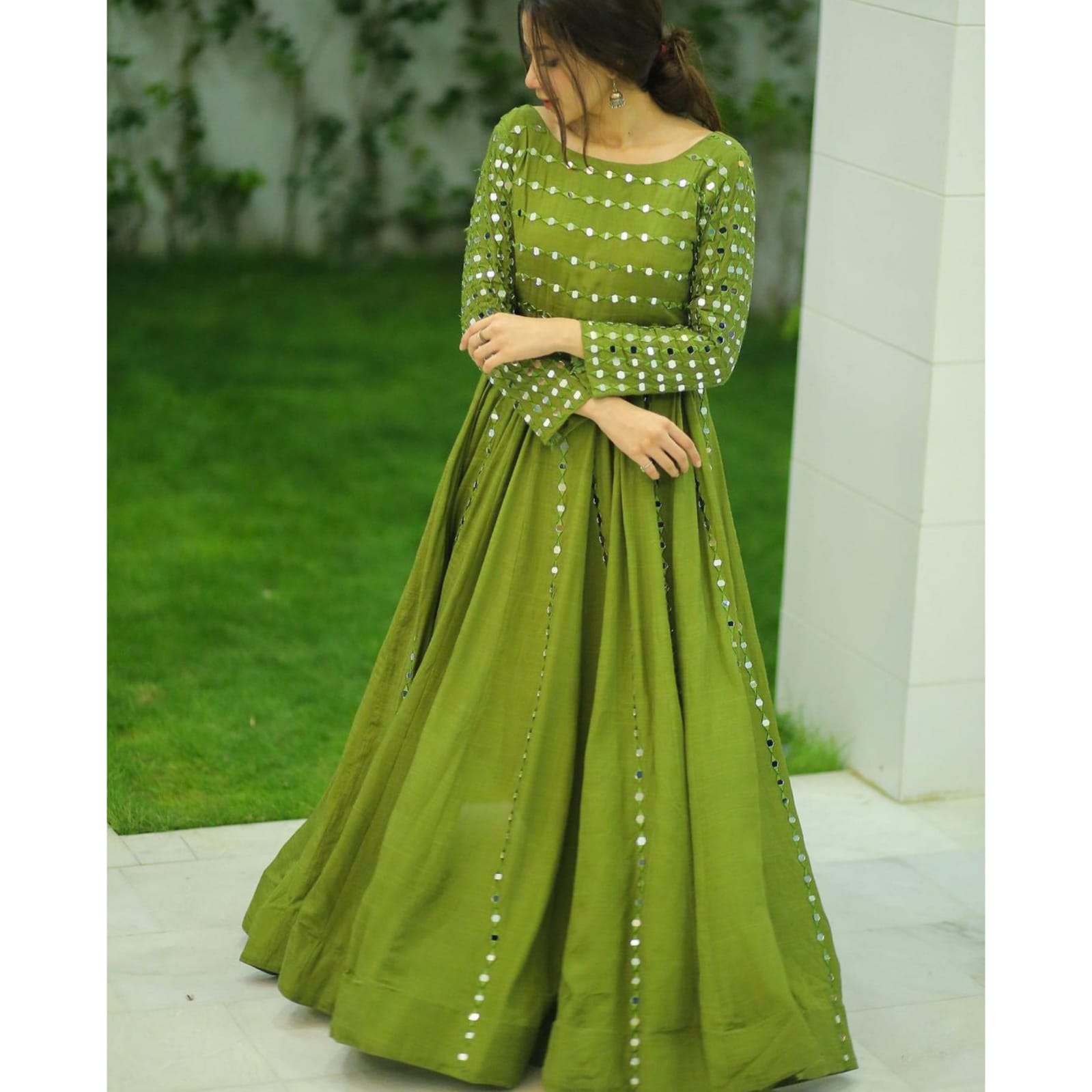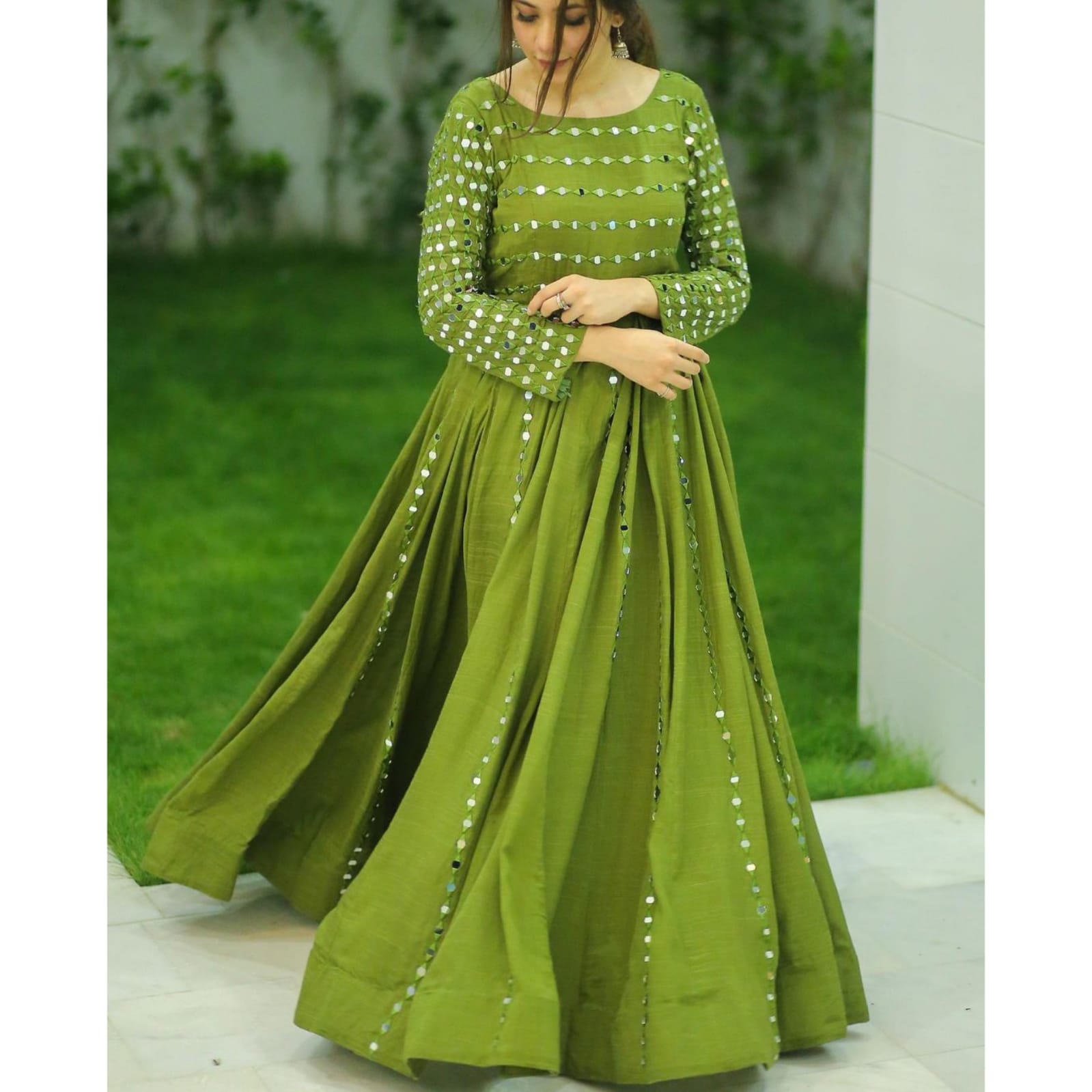 The Green Layers Heavy Mirrors Maxi is more than just an outfit—it’s an expression of elegance, grace, and timeless fashion. Whether you’re attending a wedding, festive gathering, or evening event, this dress ensures you stand out effortlessly.