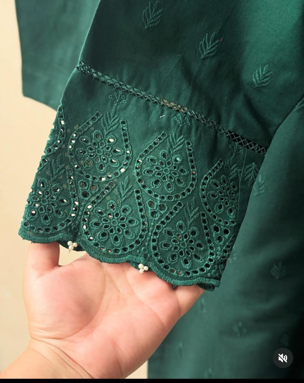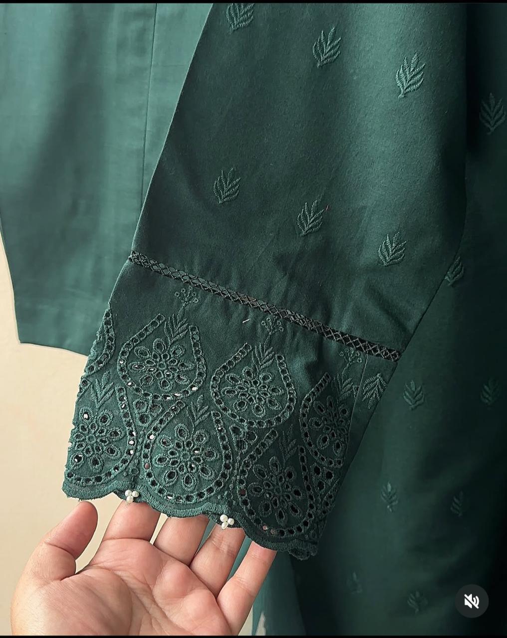 Greeny 3pcs! The lawn fabric will be so light and airy, perfect for a warm day, and the chiffon lace dupatta adds a touch of elegance. I bet it’s super comfortable too.