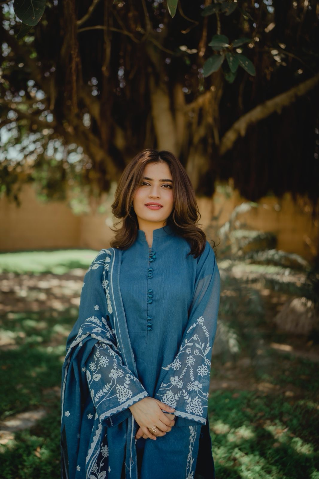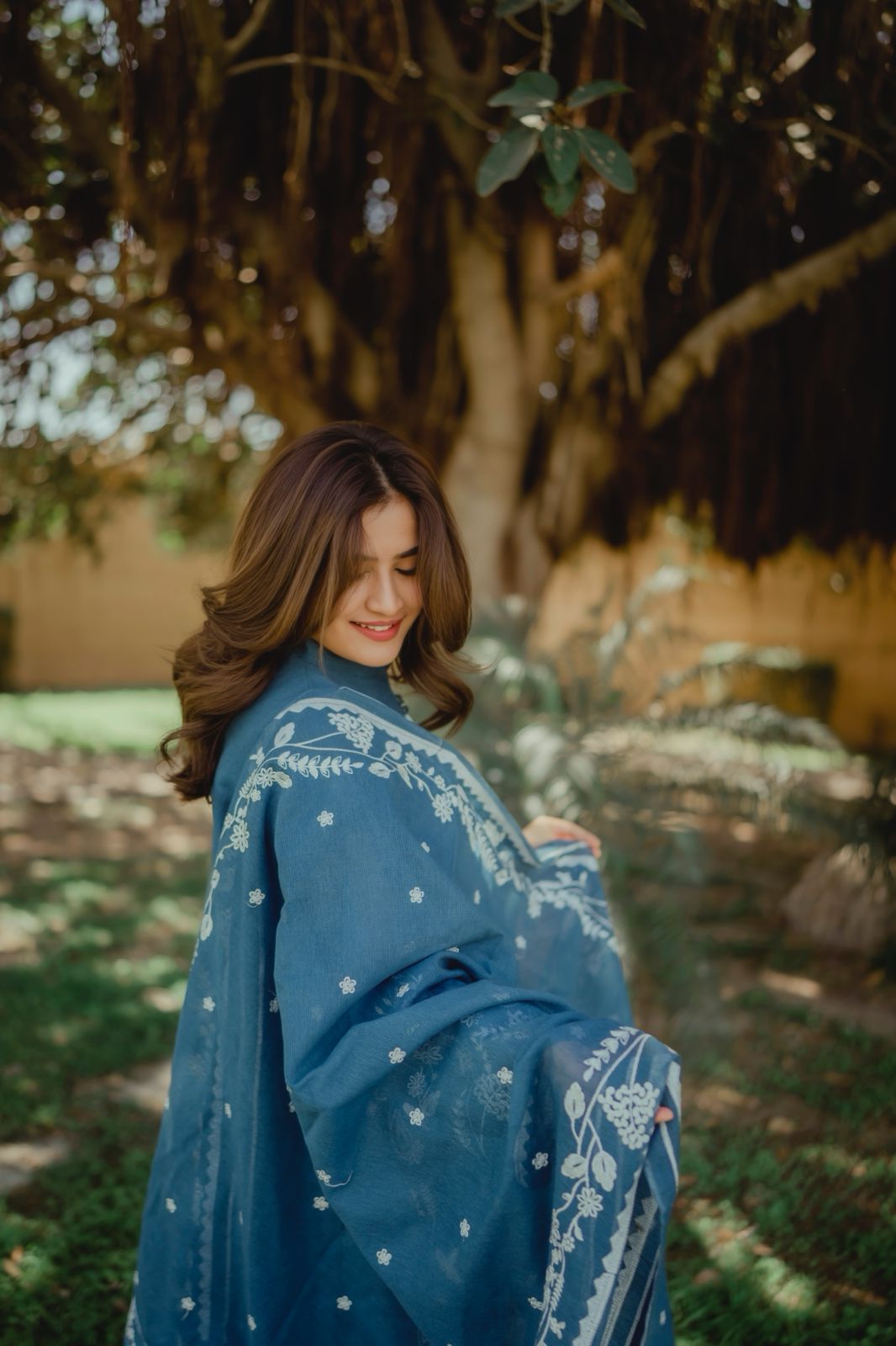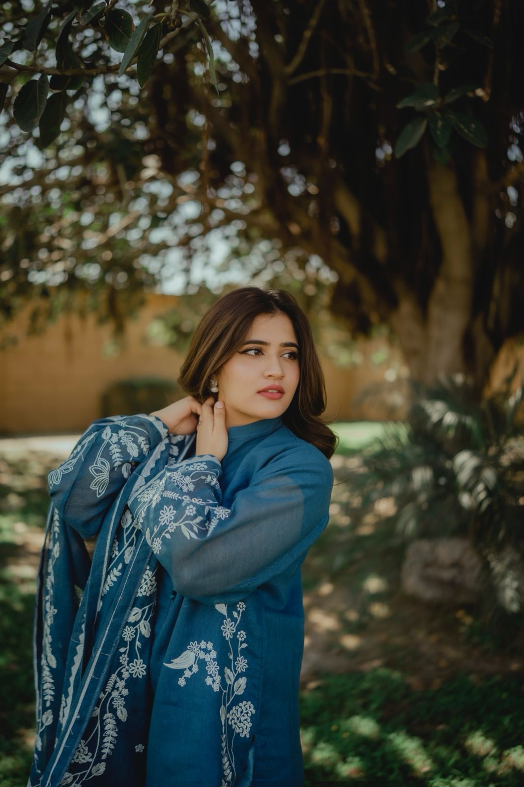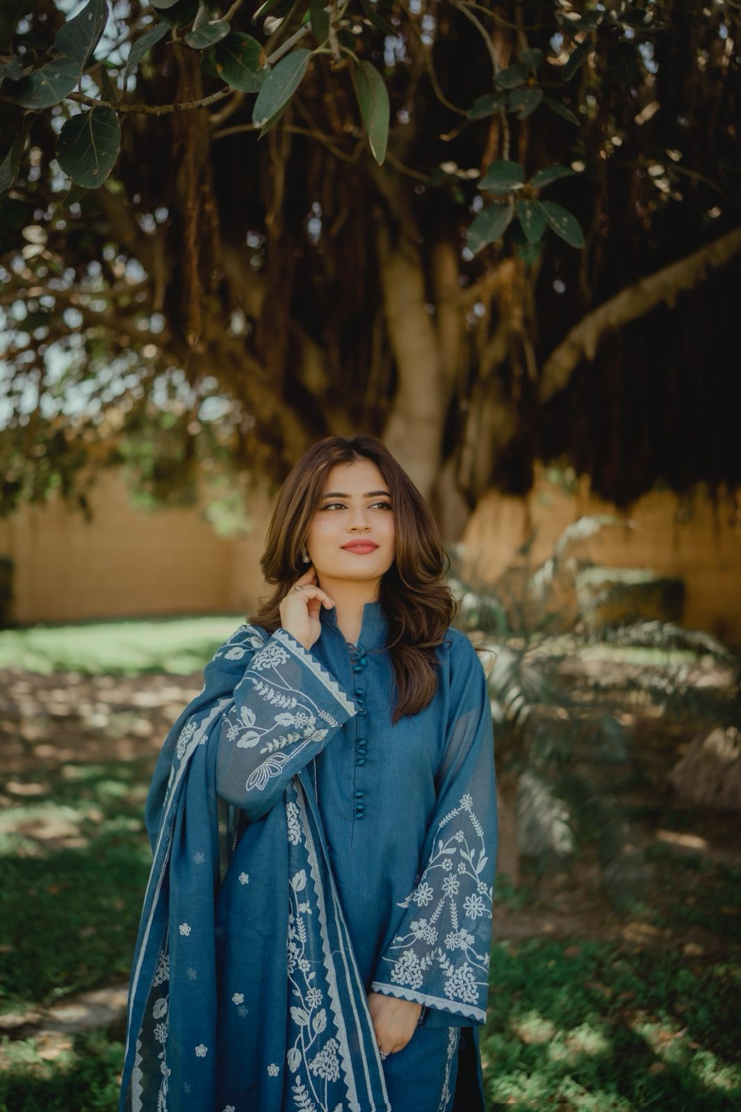 Product Details:- A beautiful loaded embroidery front on the combination of light and dark colors four sided border lace work and a silk trouser.