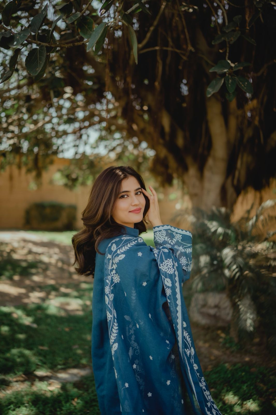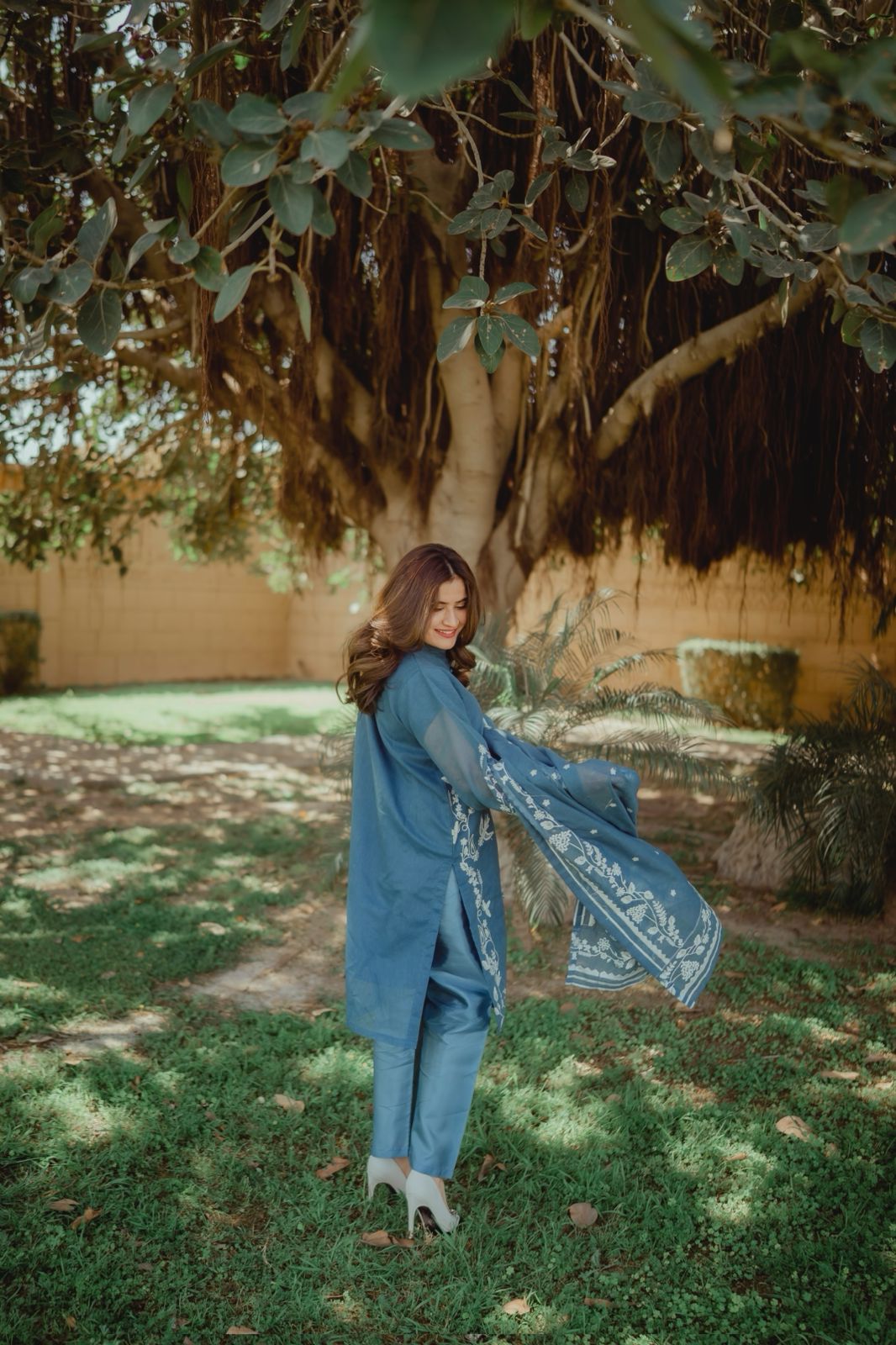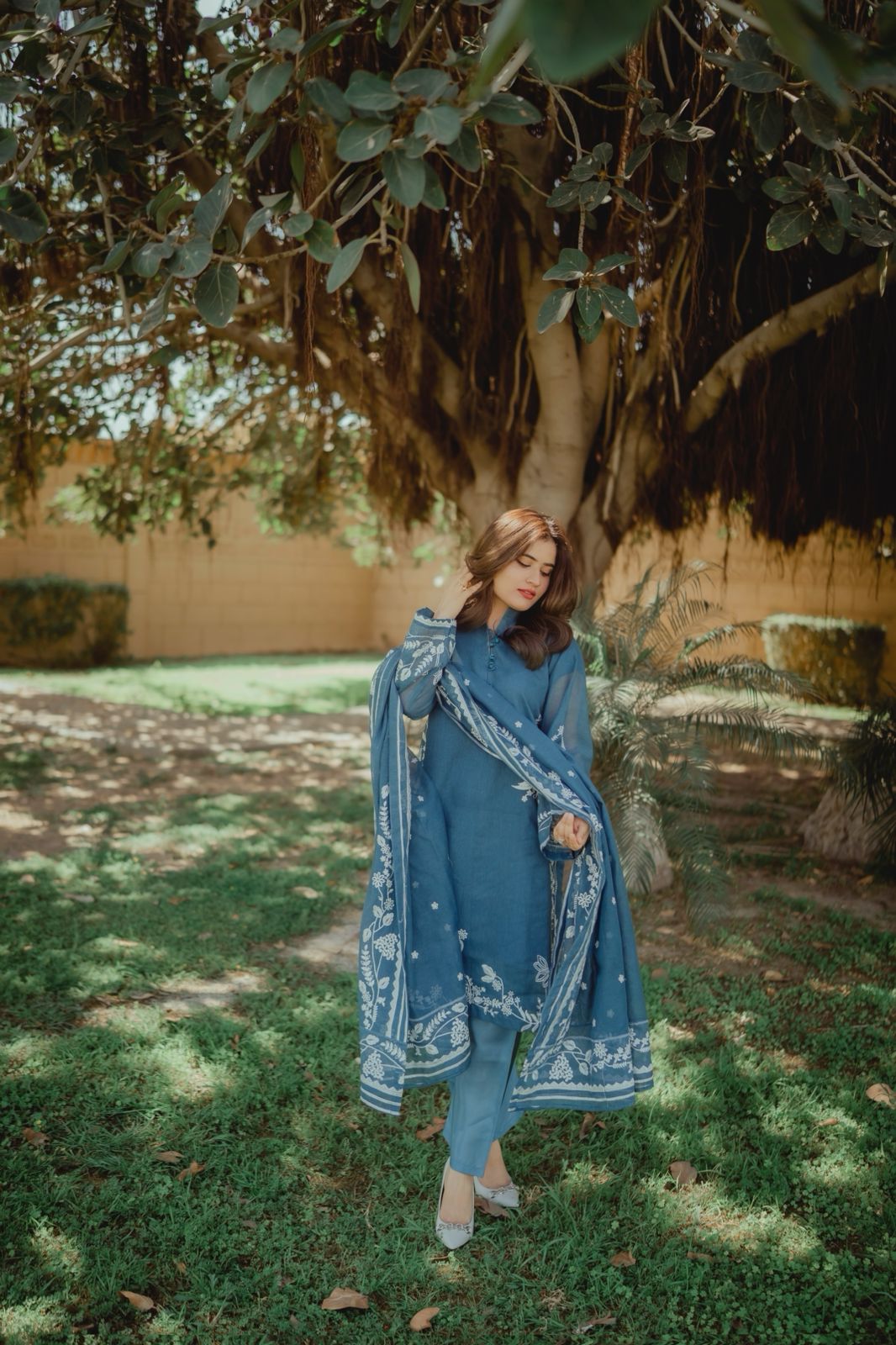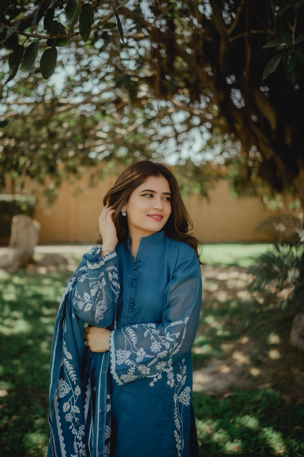 Product Details:- A beautiful loaded embroidery front on the combination of light and dark colors four sided border lace work and a silk trouser.
