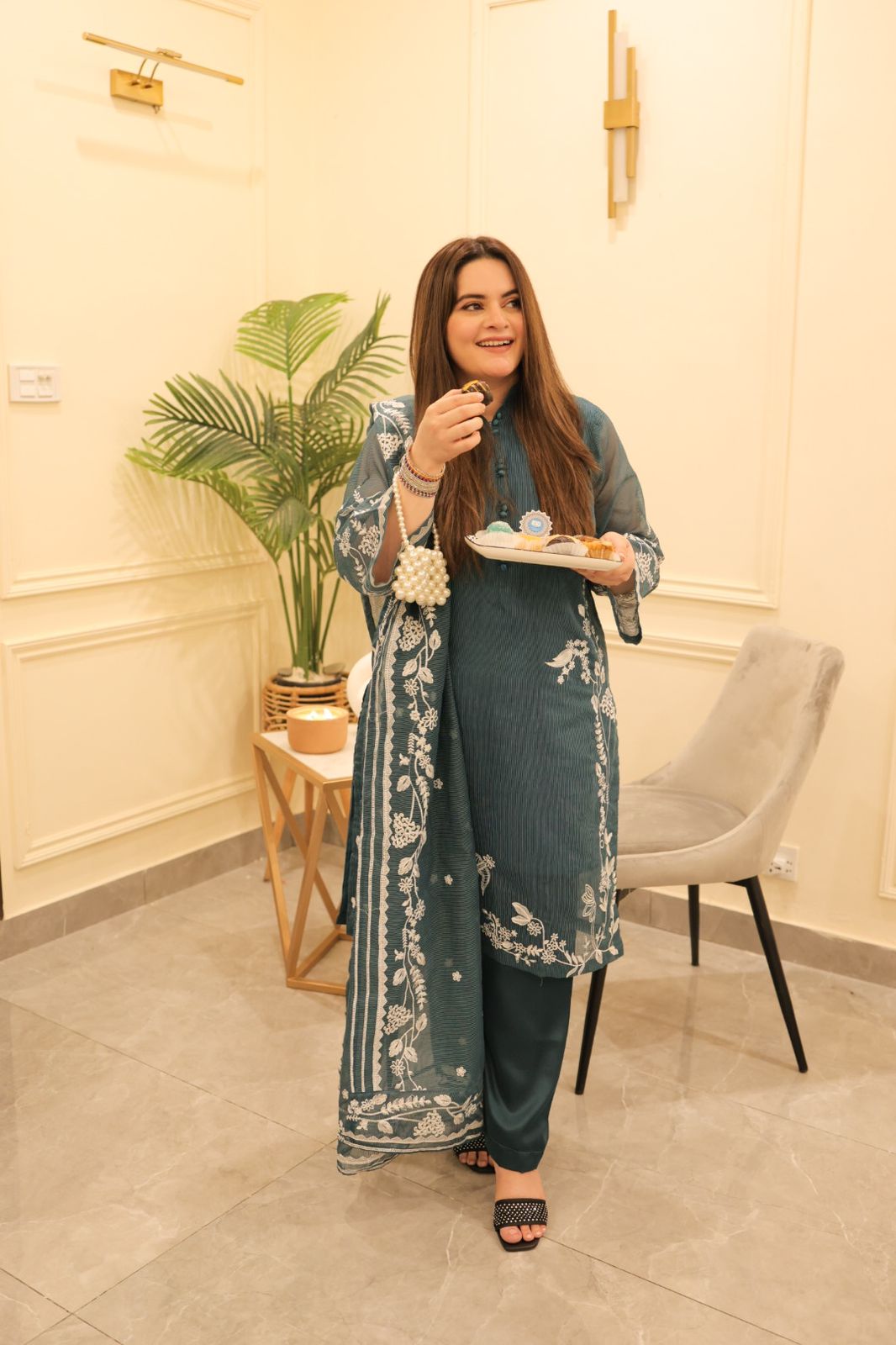Striking the perfect balance between formal and casual, the Gulbahar Three-Piece Suit is a go-to option for a wide range of events. Pair it with statement earrings and heels for an elevated look at weddings or receptions, or keep it simple with flats and minimal accessories for a graceful everyday outfit.