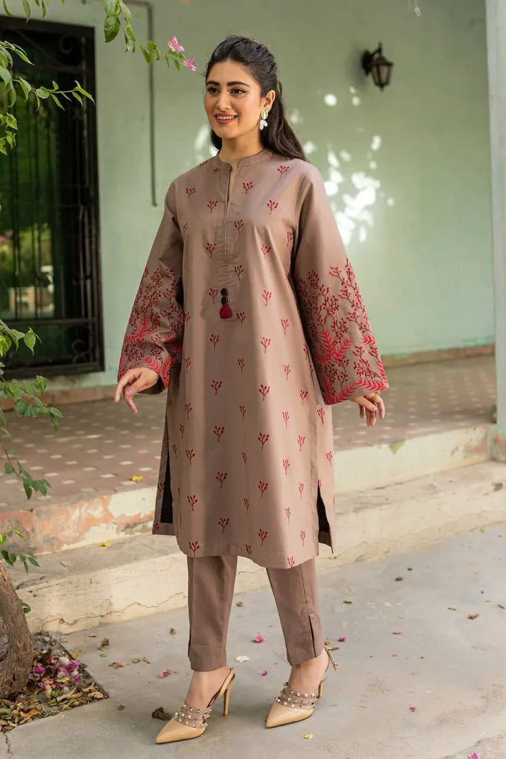 The "Kitkat Two Piece" by Glamour Kurti House offers chic comfort, perfect for casual summer occasions and festive Eid wear. Crafted from premium lawn cotton, this short-length shirt (38 inches) is ideal for those who love modern, easy-to-style outfits. Designed for affordability without compromising on quality, this two-piece ensemble is available in a versatile, timeless color. Offered in sizes ranging from small to XL, it ensures a comfortable fit for various body types, making it a practical yet stylish addition to any wardrobe.