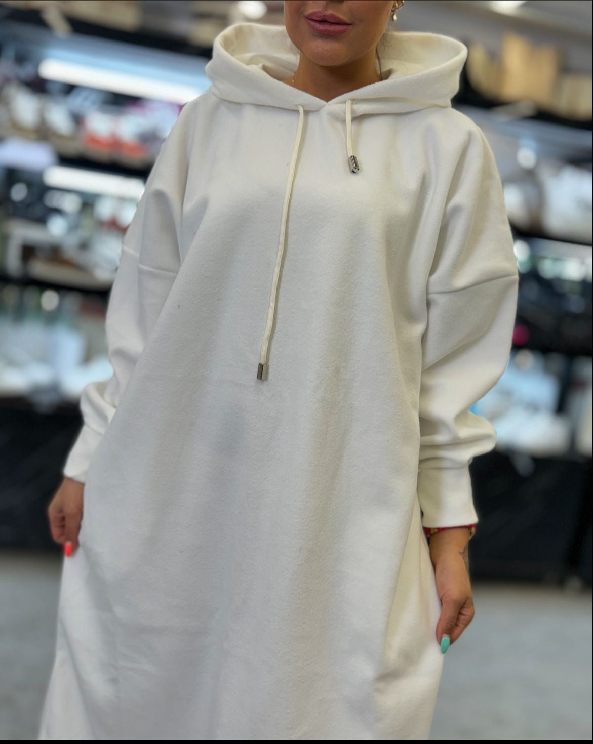 The "Long Baggy Hoodie" from Glamour Kurti House is a cozy and stylish winter essential. Crafted from high-quality double fleece, it offers warmth with a relaxed, oversized fit, ideal for a casual look. With two side pockets and a baggy silhouette, it combines comfort and practicality, available in a range of colors including sky blue, grey, black, white, and green. Offered in sizes small to XL, this hoodie is perfect for layering or standalone style during colder months, balancing modern design with functionality.