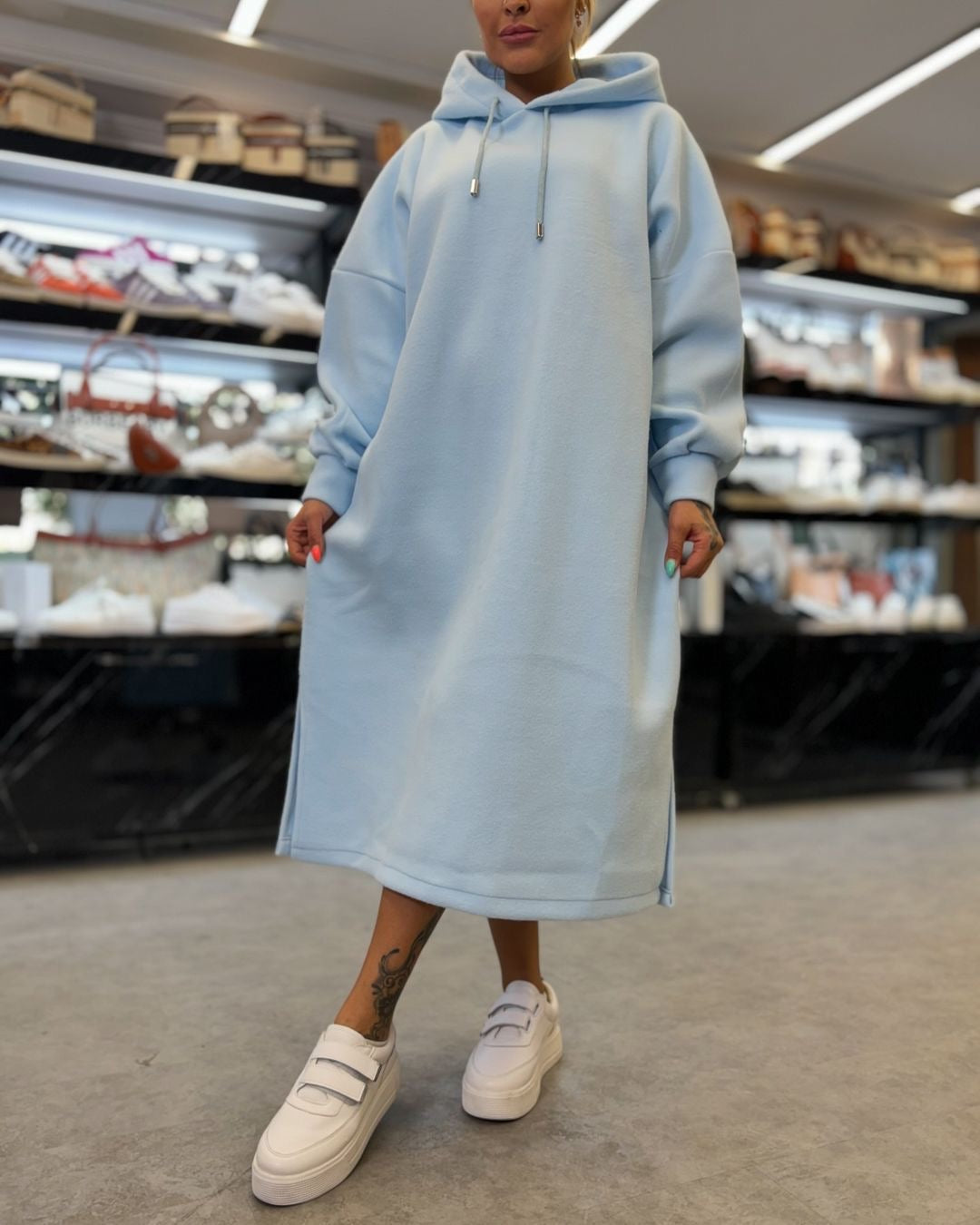 - A long length hoodie for her in winter baggy style with two side pockets giving a causal look