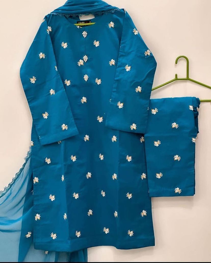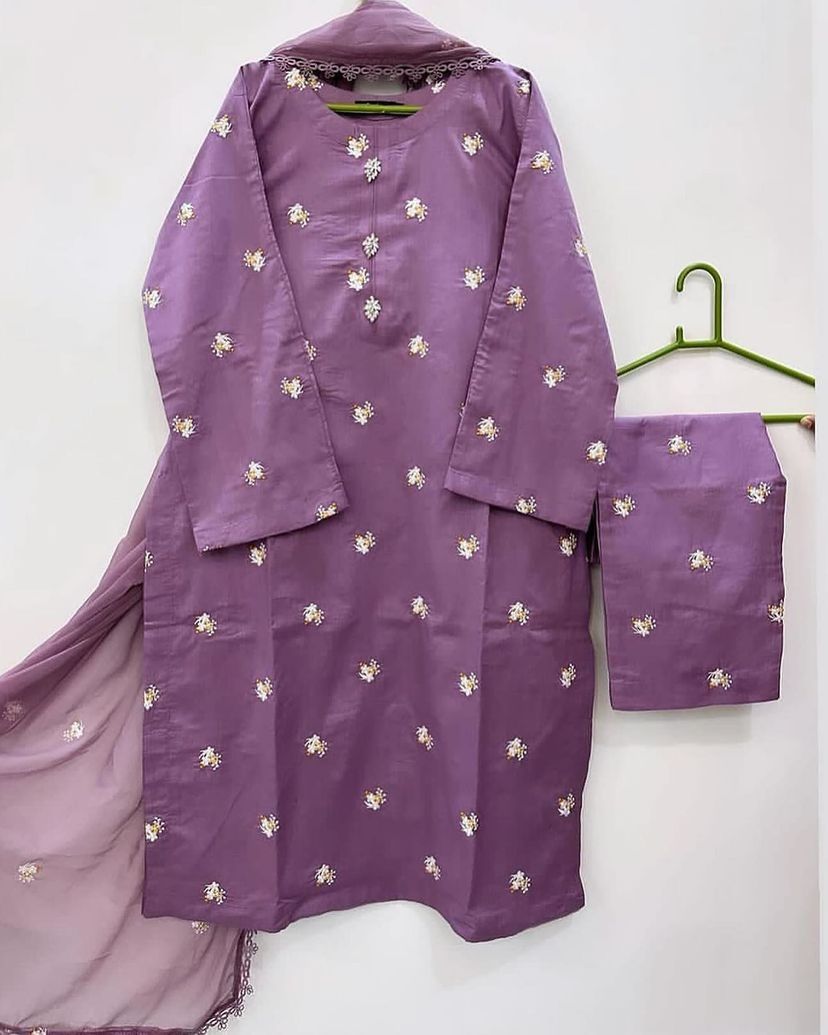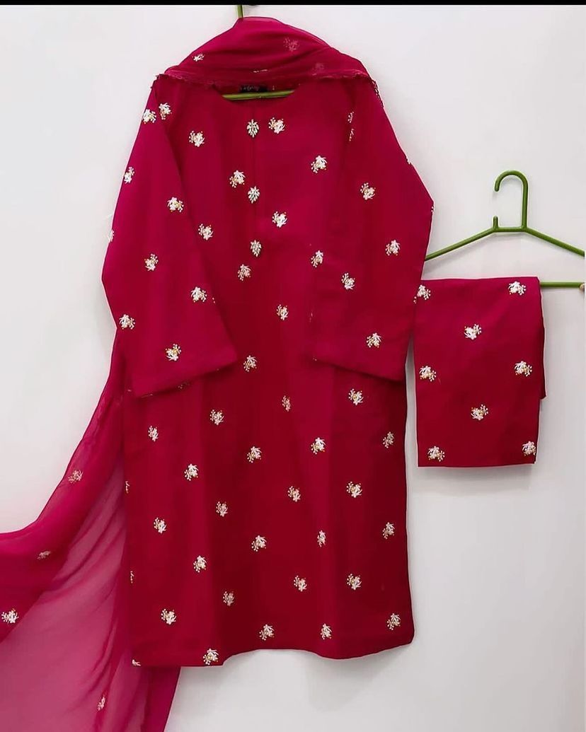- Embroidery Trouser with Chiffon 2.5 Yards Long Dupatta