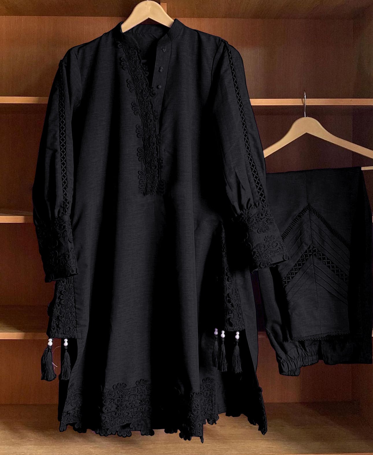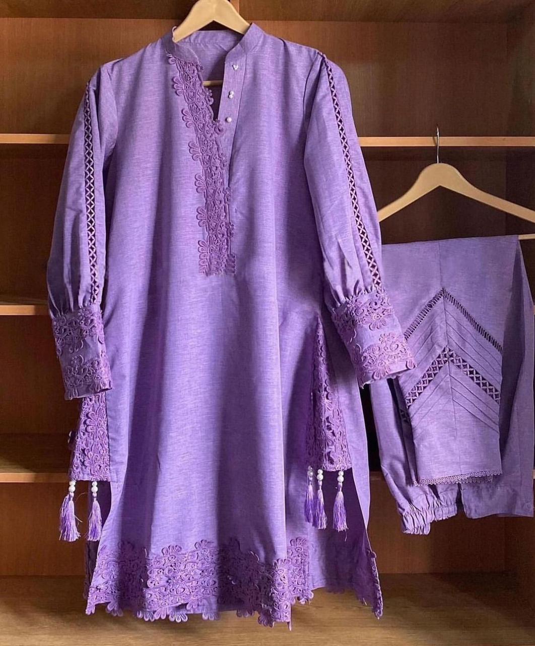 The Maya Two-Piece by Glamour Kurti House showcases luxurious embroidery on high-quality Cotton Cambridge fabric, making it a sophisticated choice for any occasion. The set features an intricately embroidered front paired with a four-sided lace border, adding a delicate yet bold finish. The ensemble includes a coordinated lace-stitched bottom, balancing elegance with comfort. Available in a range of vibrant colors such as maroon, purple, and black, the Maya Two-Piece caters to diverse style preferences and is available in sizes Small to X-Large, ensuring a flattering fit.