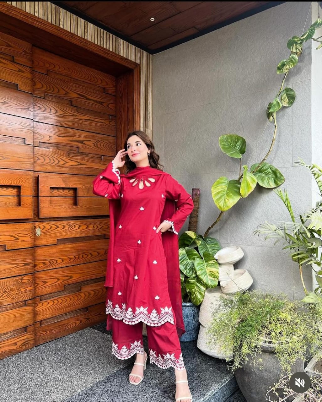 As the owner of Glamour Kurti House and a fashion blogger with over 10 years of experience in the industry, I’ve had the pleasure of working with countless collections and pieces. But the Red Rose Three-Piece Set is a standout. With its delicate floral embroidery, rich color, and versatile design, it’s the perfect choice for any occasion—be it a wedding, casual outing, or festive celebration.