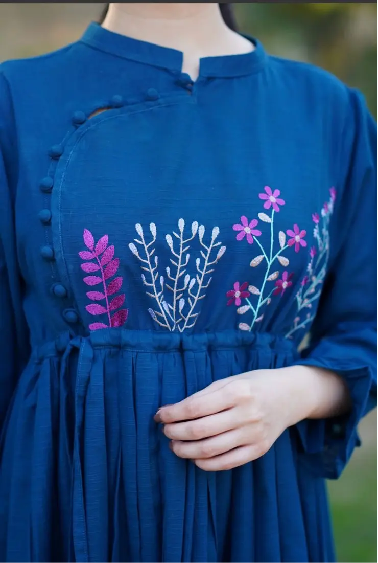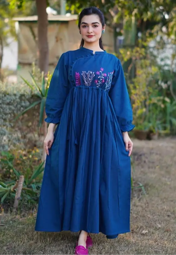 "Introducing the Rubab Frock in elegant blue khaddar, exclusively at Glamour Kurti House. This beautifully embroidered frock is crafted from premium winter khaddar, offering both warmth and style for the colder season. Available in sizes Small, Medium, Large, and X-Large, it’s designed to provide a comfortable fit with a touch of traditional charm. Elevate your winter wardrobe with this stunning piece!