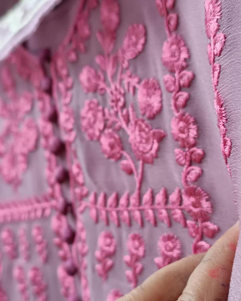 Exquisite Safina Embroidery The hallmark of this outfit is its intricate Safina embroidery. This style of embroidery is known for its delicacy and detailed threadwork, often incorporating floral patterns, geometric motifs, and sparkling accents. The skillful craftsmanship ensures that the embroidery stands out beautifully, making this three-piece suit perfect for any special occasion.