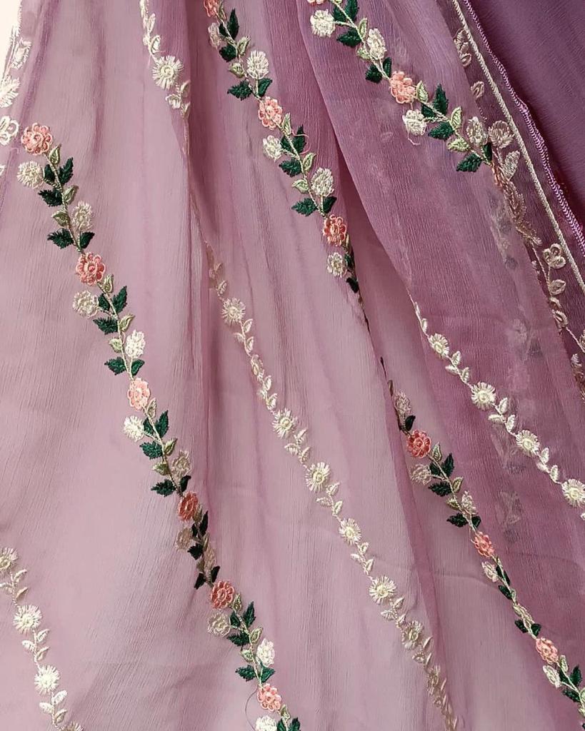 Product Details: A pure chiffon embroidery three piece stitched in sizes small, medium, large, XL and have a loaded embroidery which making its wedding collection.