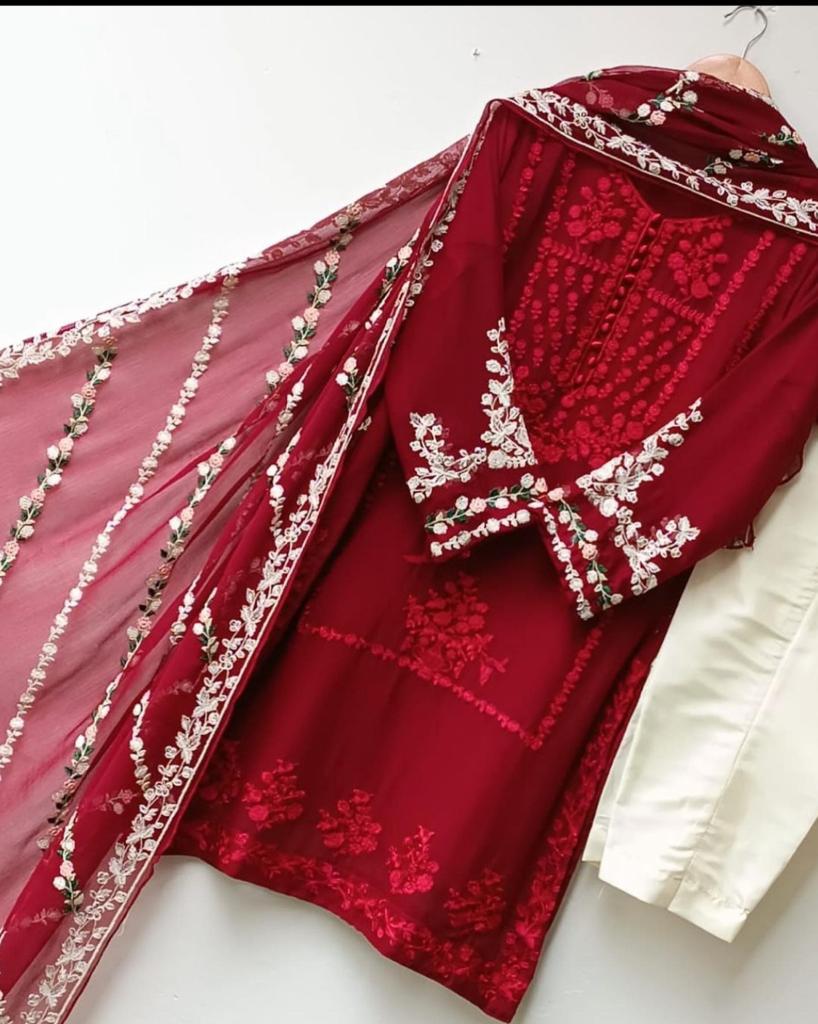 Do you ever wish for an outfit that combines timeless elegance, intricate design, and unmatched comfort—all in one? Enter the Safina Embroidery Three Piece, a breathtaking ensemble designed to elevate your wardrobe and ensure you feel like a true fashionista, no matter the occasion. Whether it's a wedding, a festive gathering, or even a formal dinner, this beautifully crafted three-piece set from Glamour Kurti House will be your ultimate style solution. With its rich embroidery, delicate fabric, and flattering fit, the Safina Embroidery Three Piece is a must-have in every modern woman’s wardrobe.