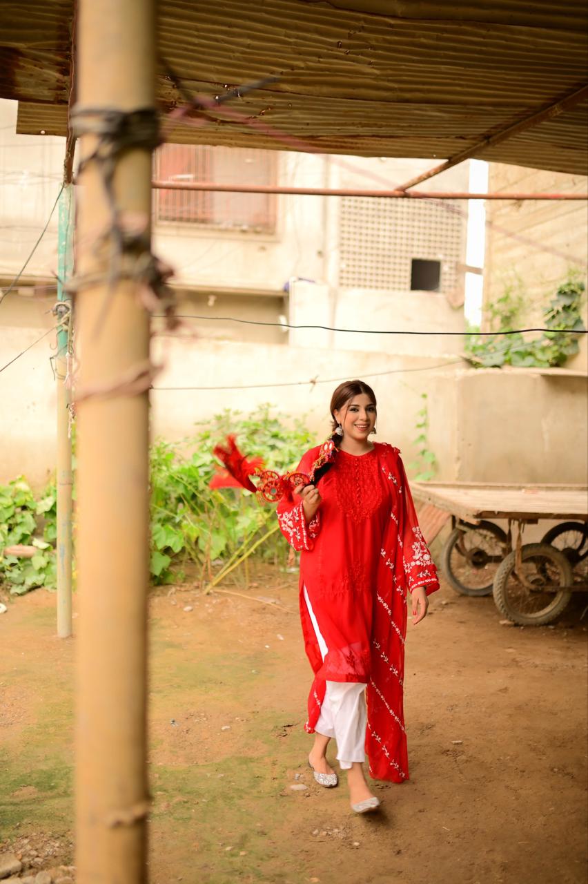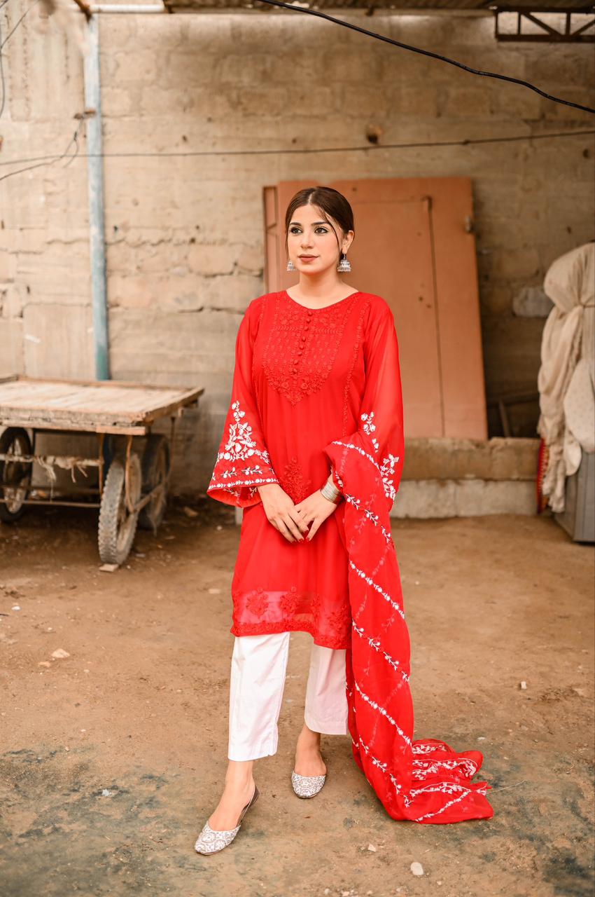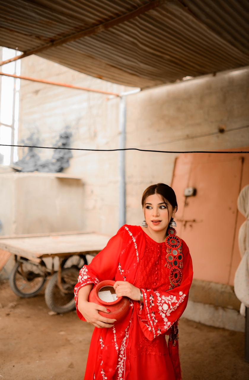 Product Details:-A pure chiffon embroidery three piece stitched in sizes small medium large xl and have a loaded embroidery which making its wedding collection đ