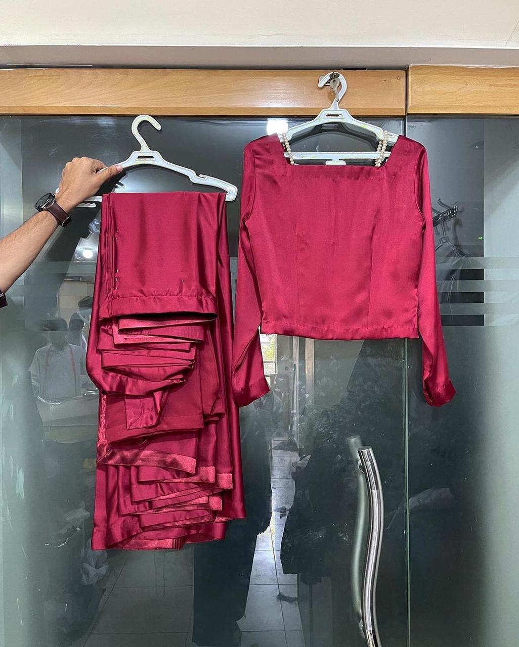 The New Silk Stitched Saree is made from luxurious silk fabric, offering a soft, flowy drape while maintaining a structured and refined look.