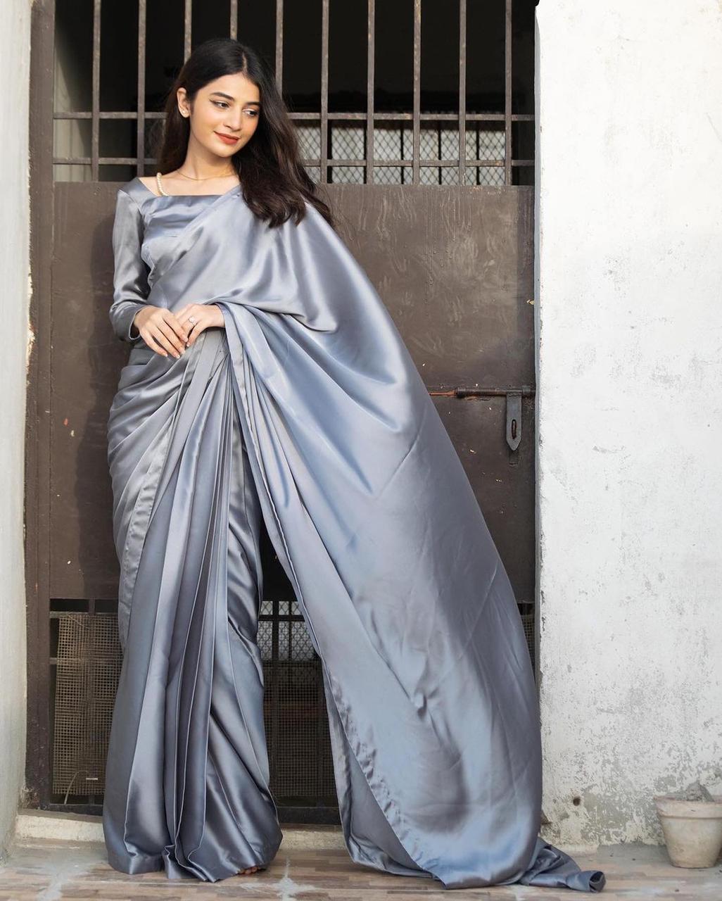 Silk has always been a symbol of elegance and grace. This stitched silk saree brings the luxurious shine and flowy feel of silk while keeping it easy to wear.