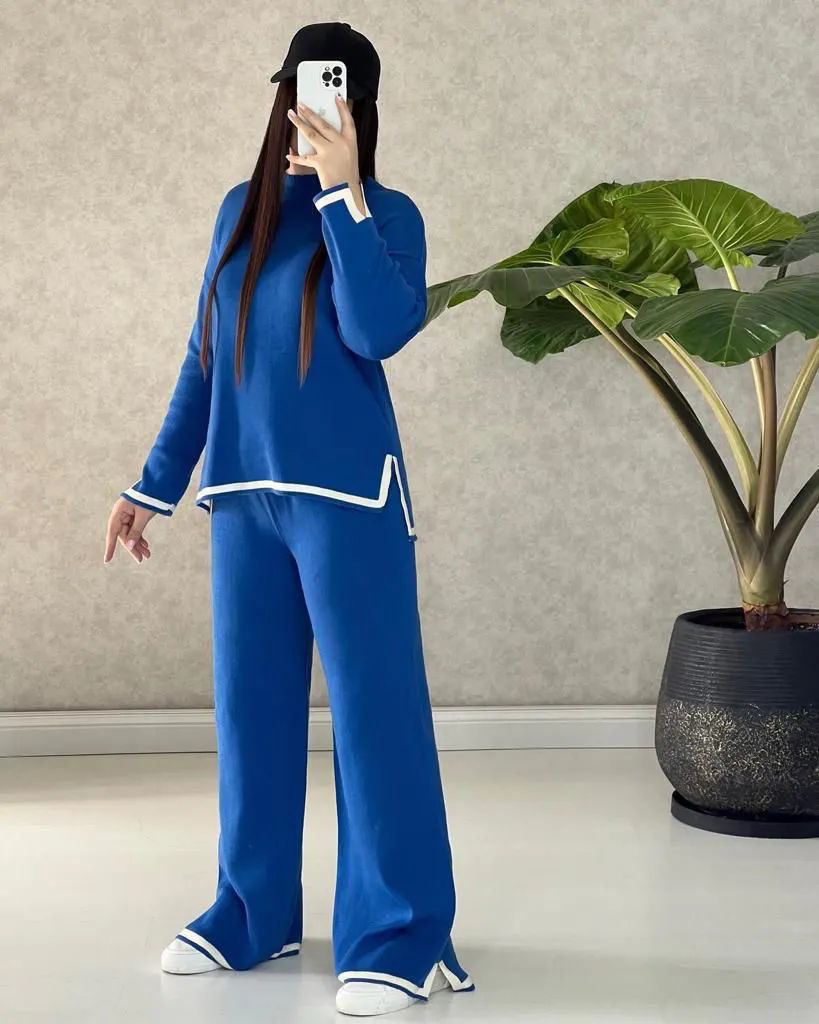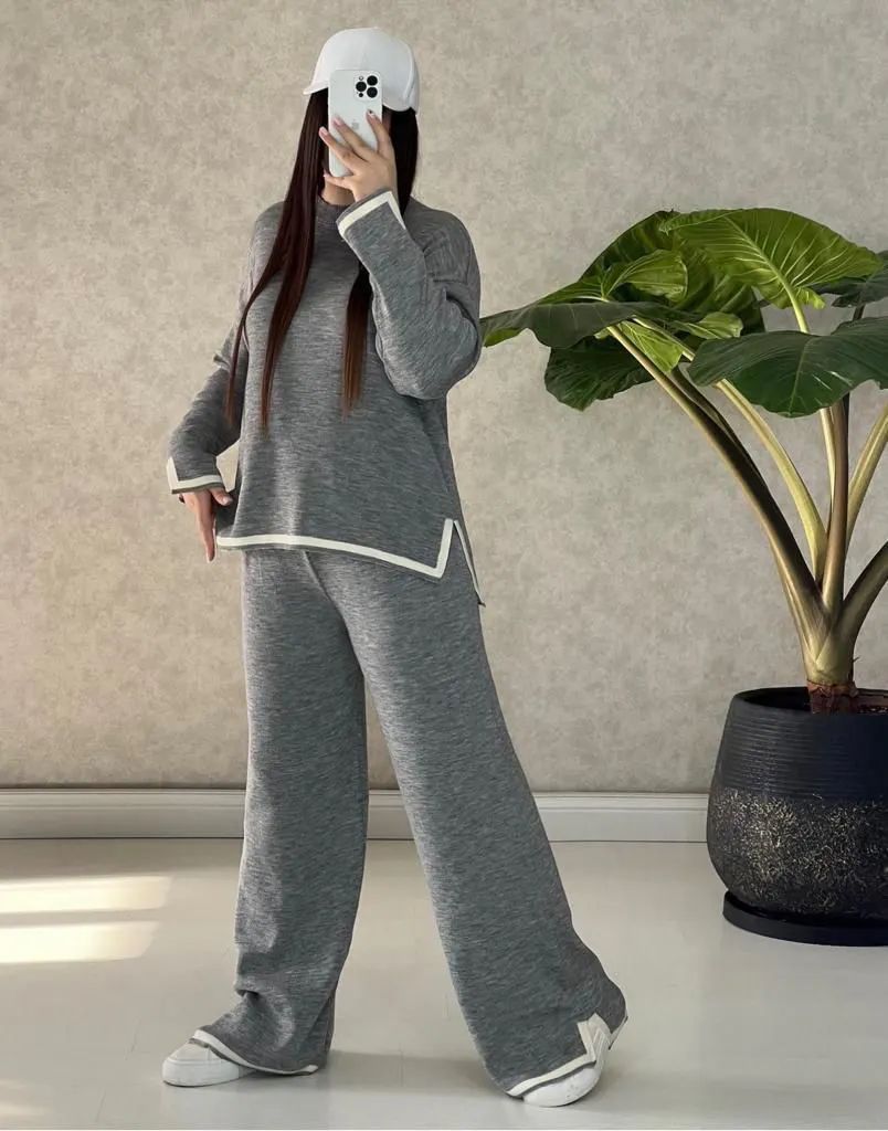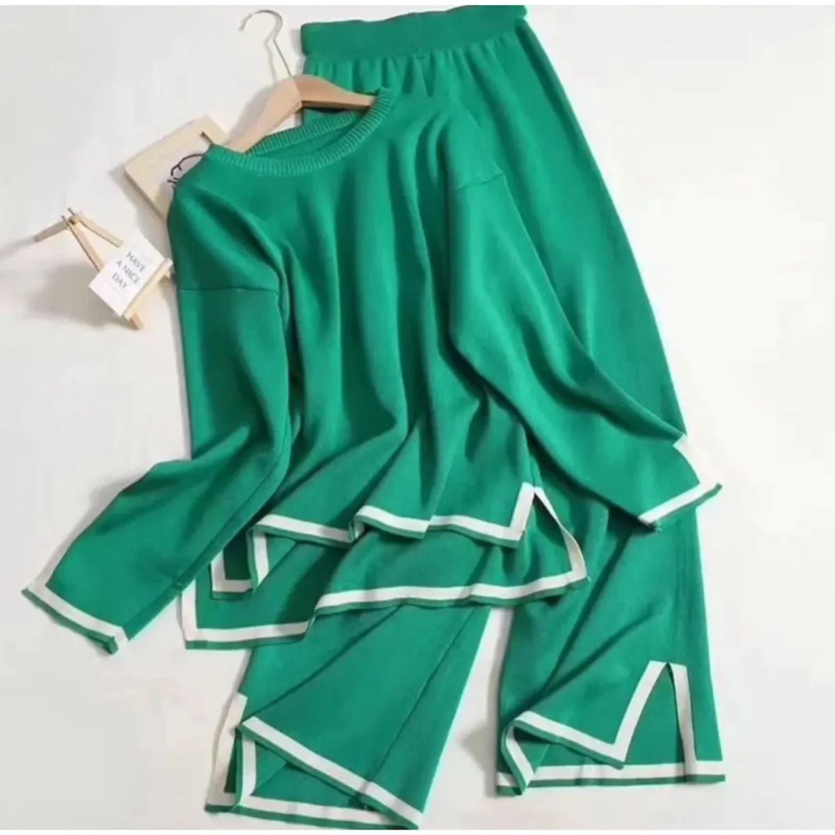 The "Stripes Panel Tracksuit" from Glamour Kurti House is a stylish and cozy winter outfit made with soft fleece. Its modern design includes a striped panel that adds flair to the classic tracksuit look, making it ideal for casual outings and chilly days. Available in versatile colors—hazel grey, pink, green, and royal blue—it ensures both warmth and comfort, with medium and large size options for a tailored fit. This tracksuit combines trendy design with practical warmth, making it an essential winter piece.