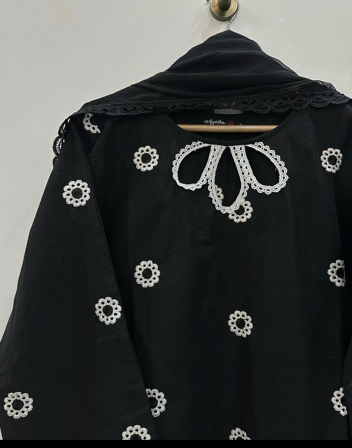 Product details:- A very dexent and cute embroidery 3pcs in long 41 lenght chiffon lace for sides work