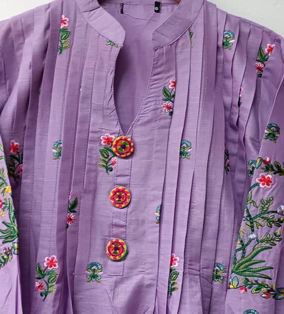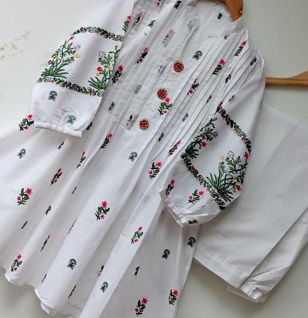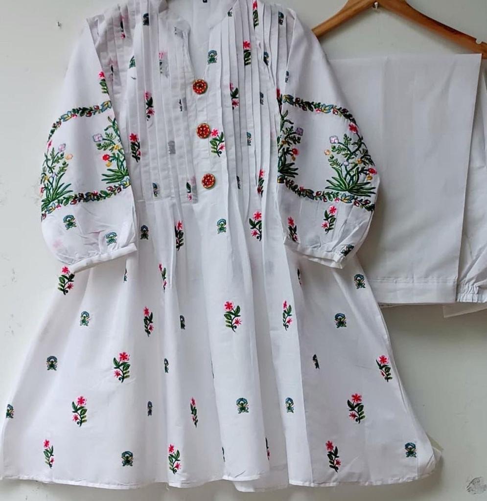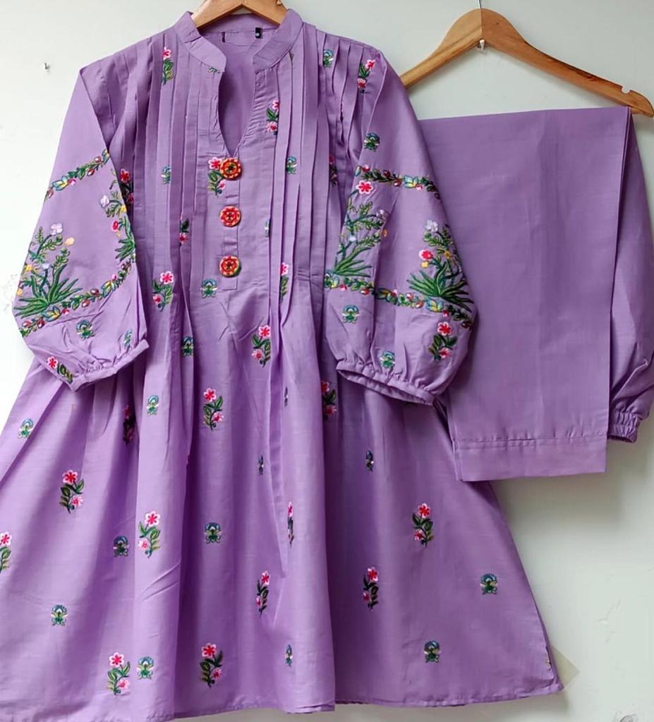 Product Detail: A very fine stitched embroidery 2 piece platted front work and a plain trouser.