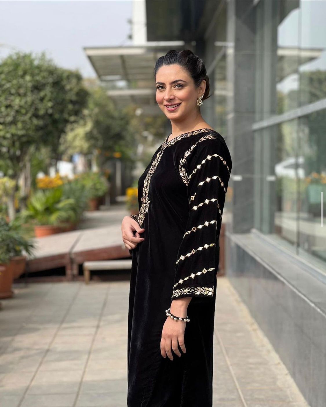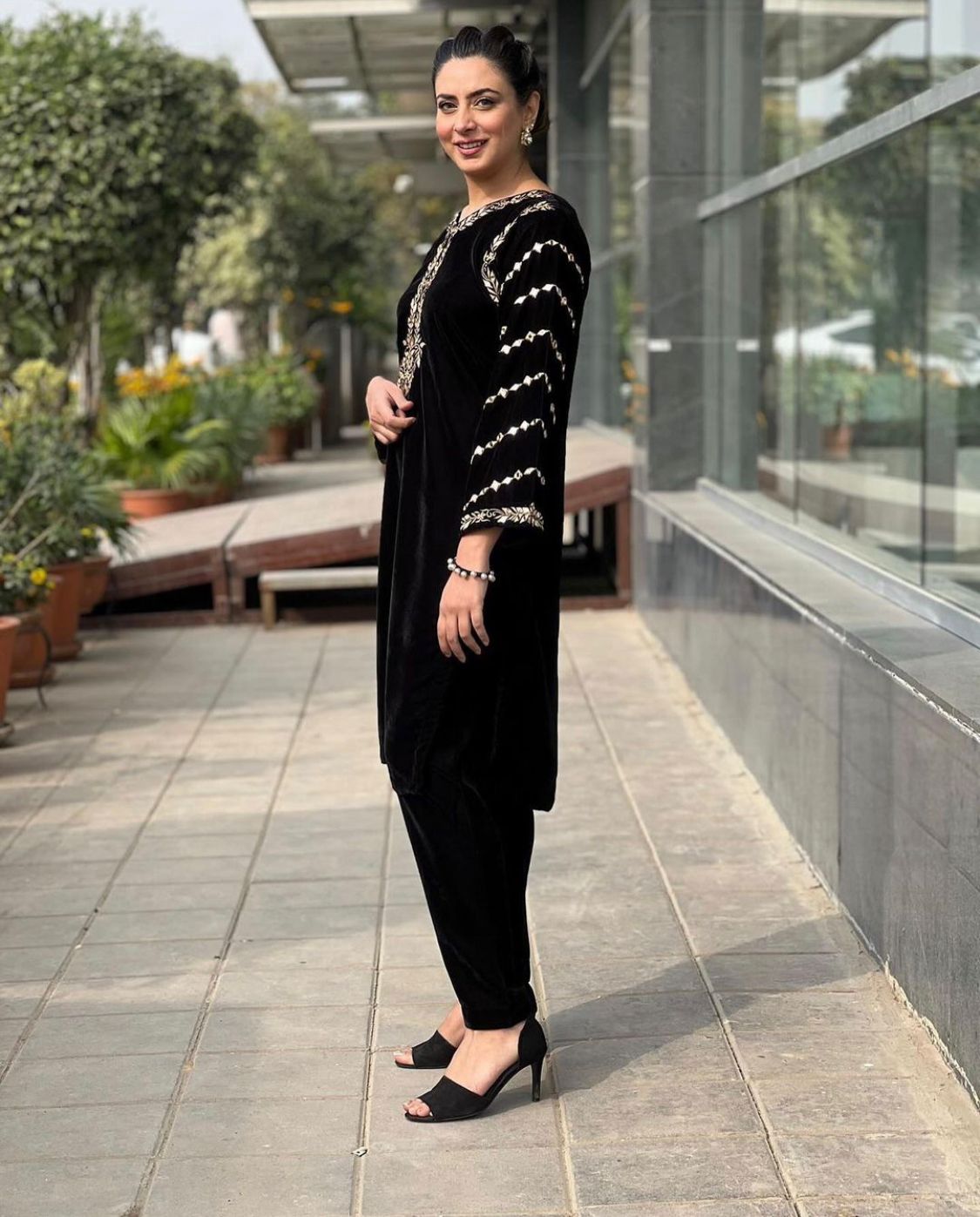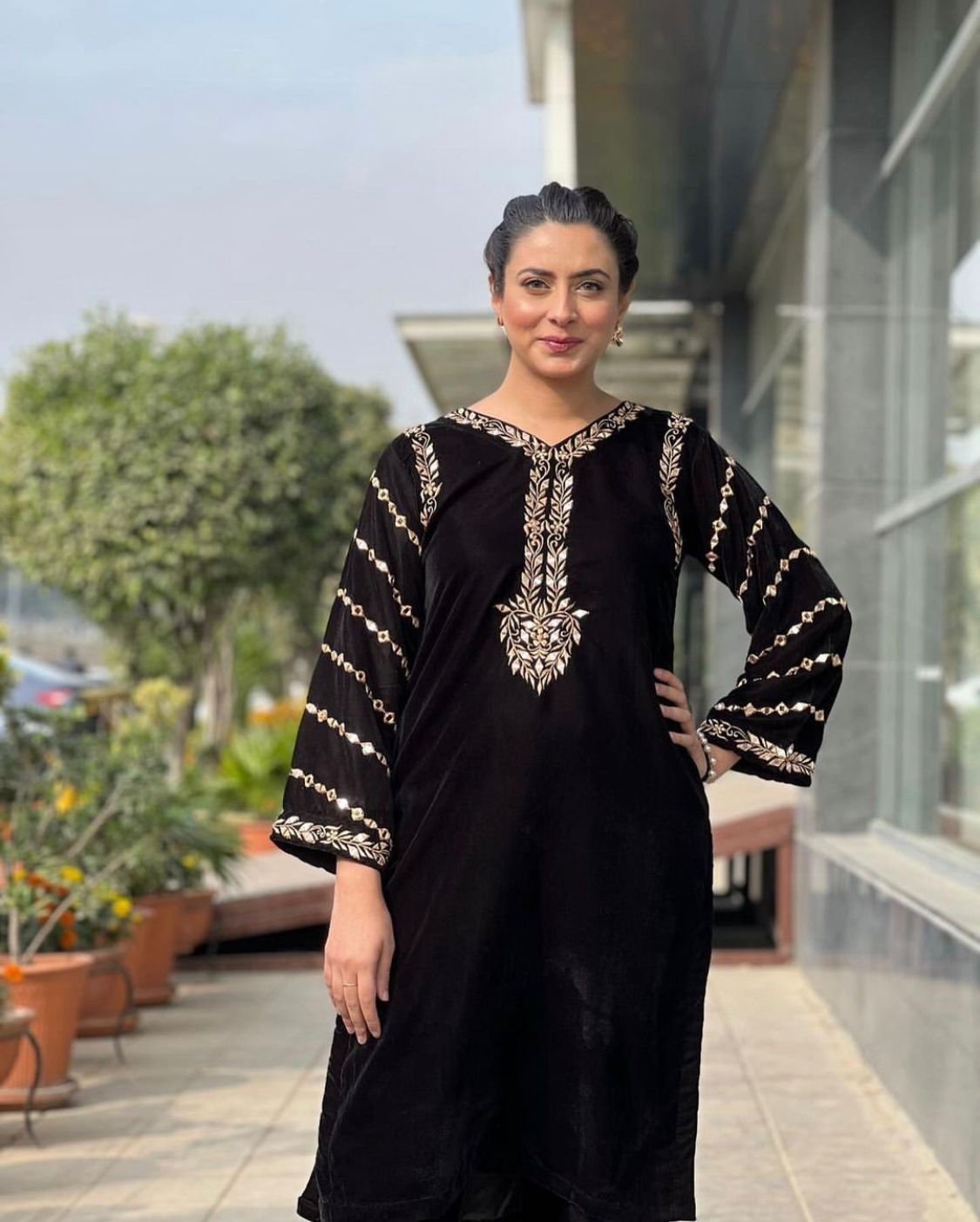 This luxurious, statement outfit is everything you need—plush velvet fabric to keep you warm, intricate mirror embellishments to add that festive sparkle, and a two-piece design for the perfect blend of tradition and trend. Whether you’re heading to a wedding, Eid celebration, or a chic dinner party, this ensemble will make sure you look AND feel like a queen.