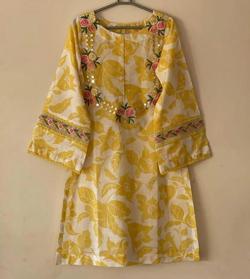 Product Name: Yellow Patel Two-Piece Ladies Printed Set with Tulip Trouser